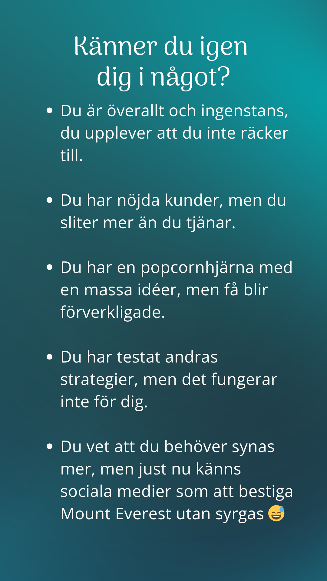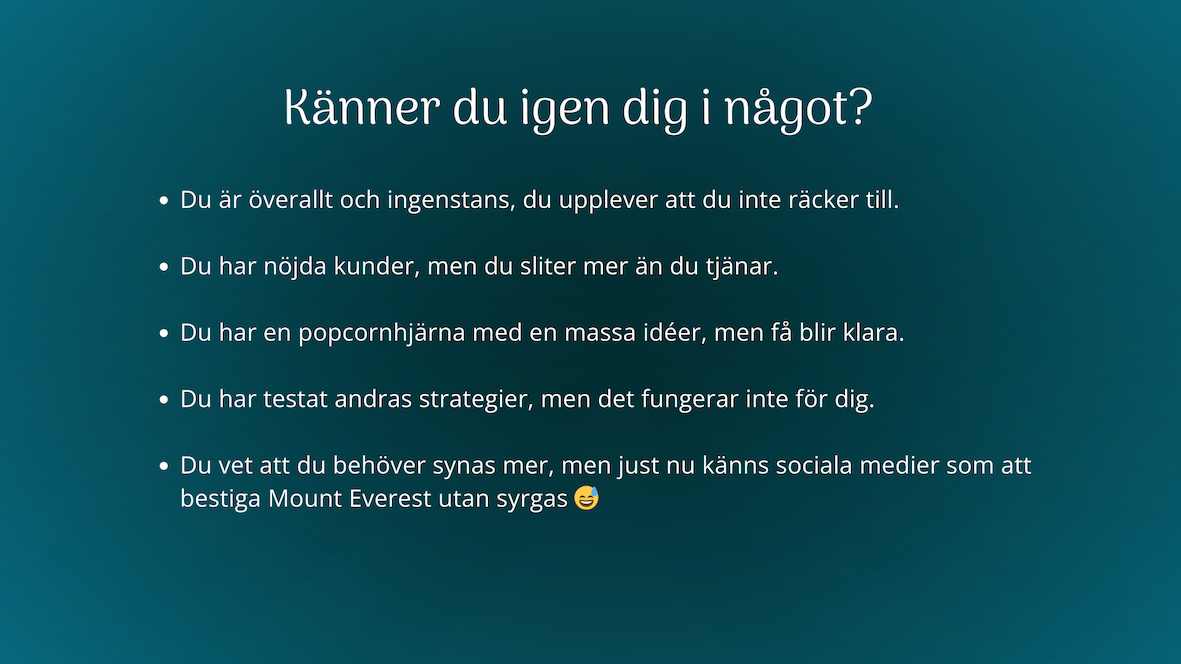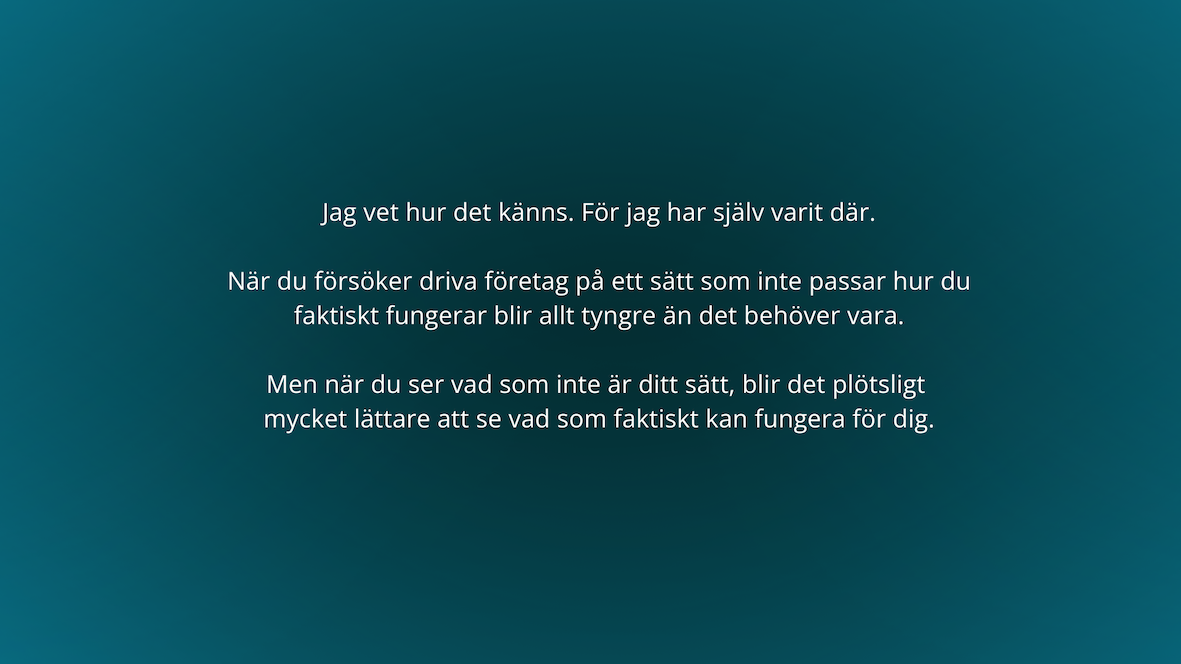 I över ett decennium har jag arbetat med onlineföretagande och teknik. Men det jag egentligen gör är att skapa klarhet. Jag ser snabbt var det skaver, varför det gör det och vad som faktiskt behöver förändras.
